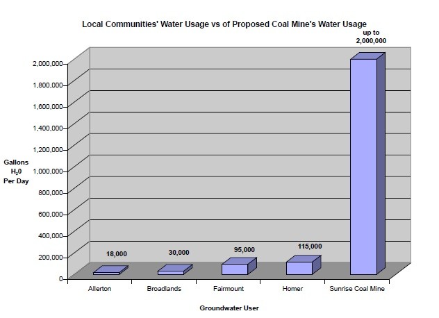 Sunrise's Coal Mine would use roughly ten times as much water as the four rural communities of Homer, Fairmount, Broadlands and Allerton combined.